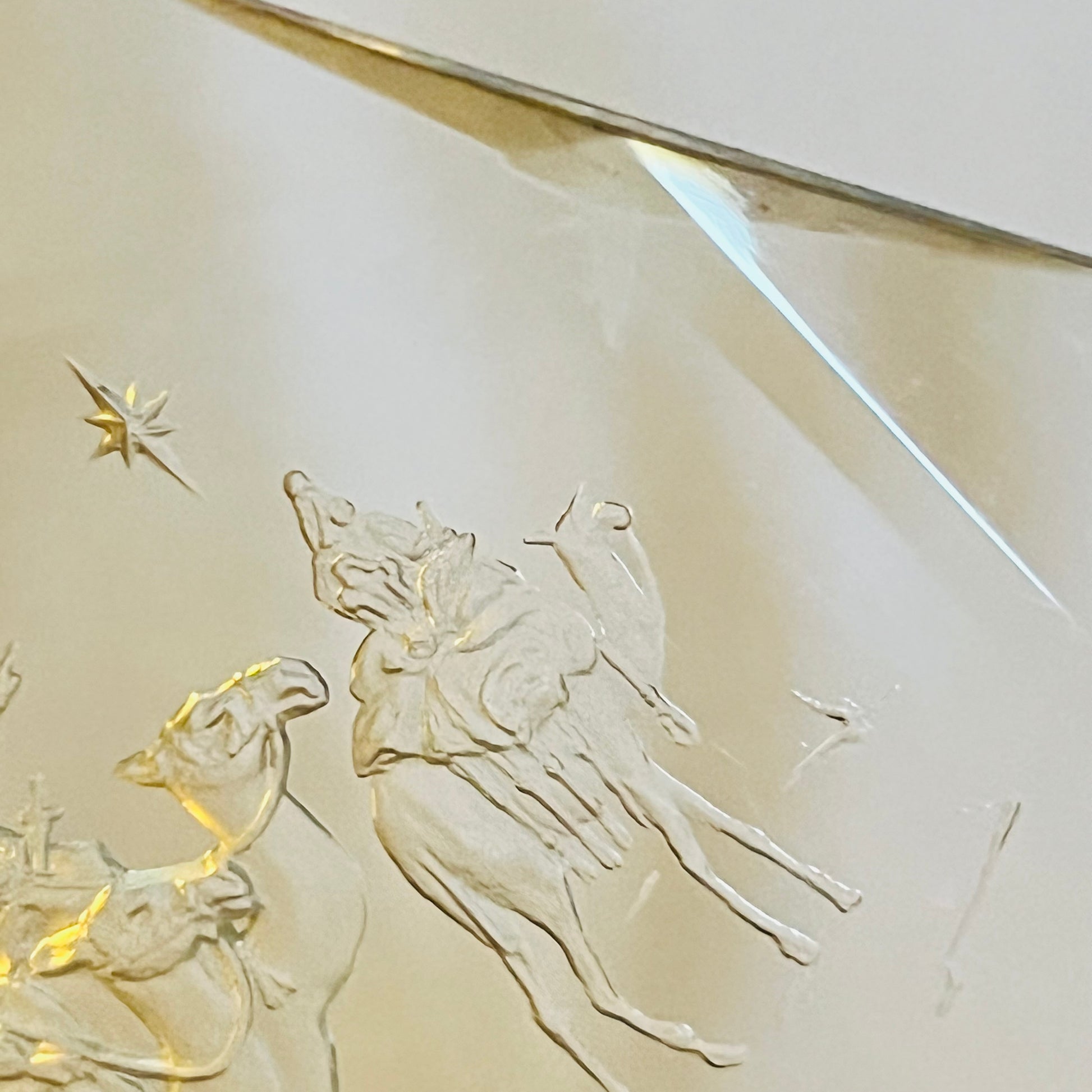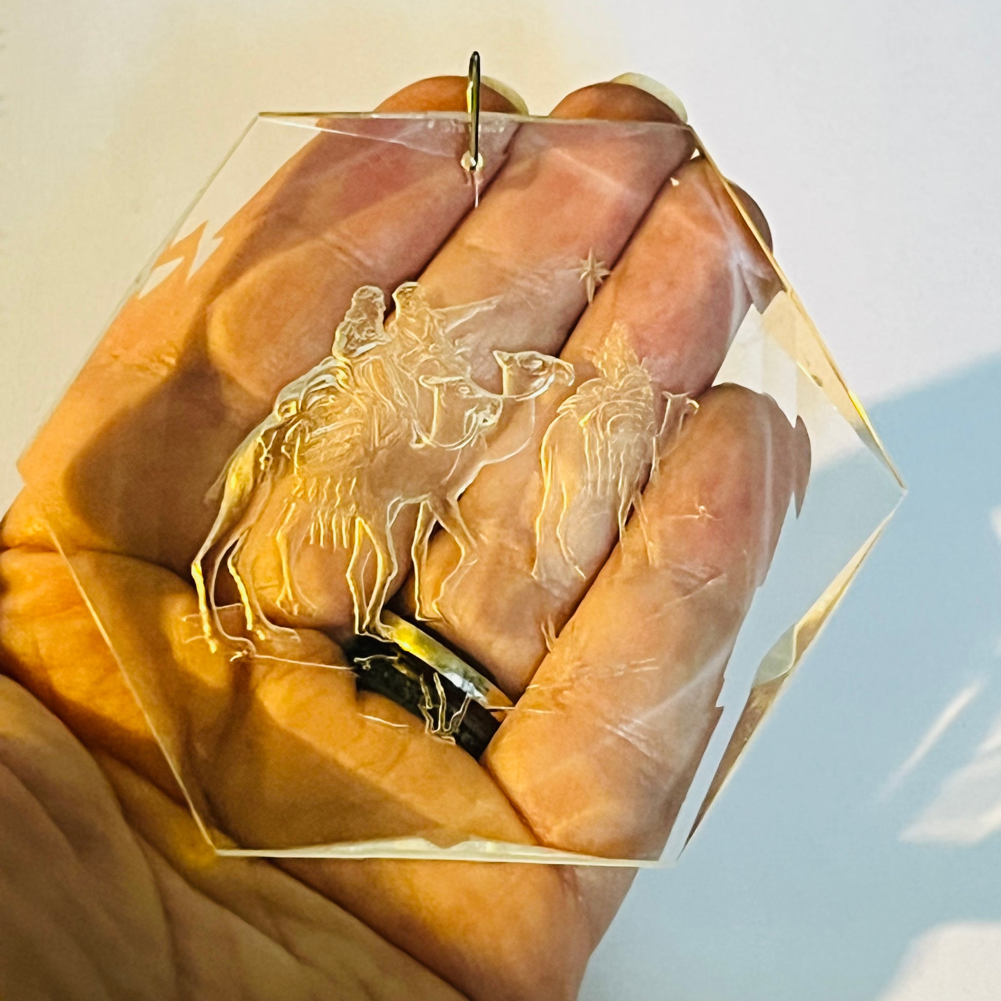 Celebrate the beauty and tradition of the season with this Henco Vintage Crystal Clear Ornament featuring the Three Wise Men on their journey to Bethlehem. Crafted from clear acrylic, this 3” ornament captures light beautifully, creating a sparkling effect that adds elegance to any holiday display.