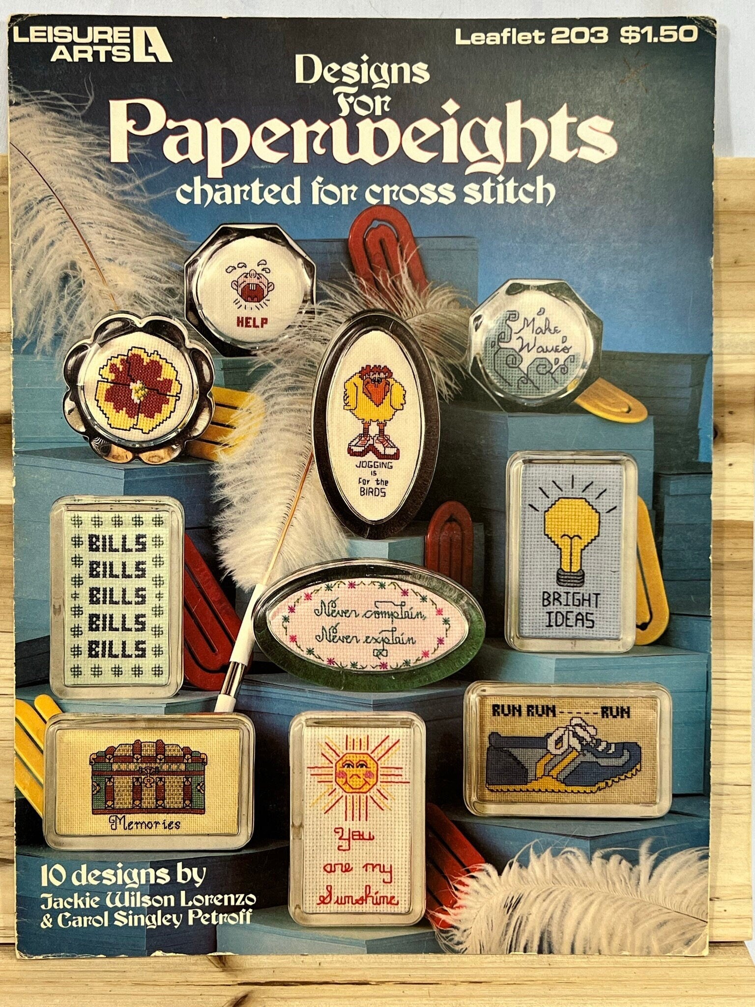 Leisure Arts Leaflet 203 - Designs for Paperweights Charted for Cross Stitch - 10 Designs by Jackie Wilson Lorenzo & Carol Singley Petroff