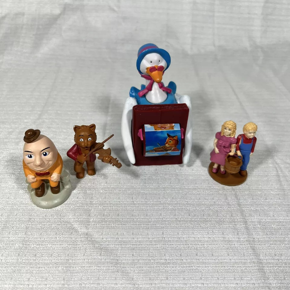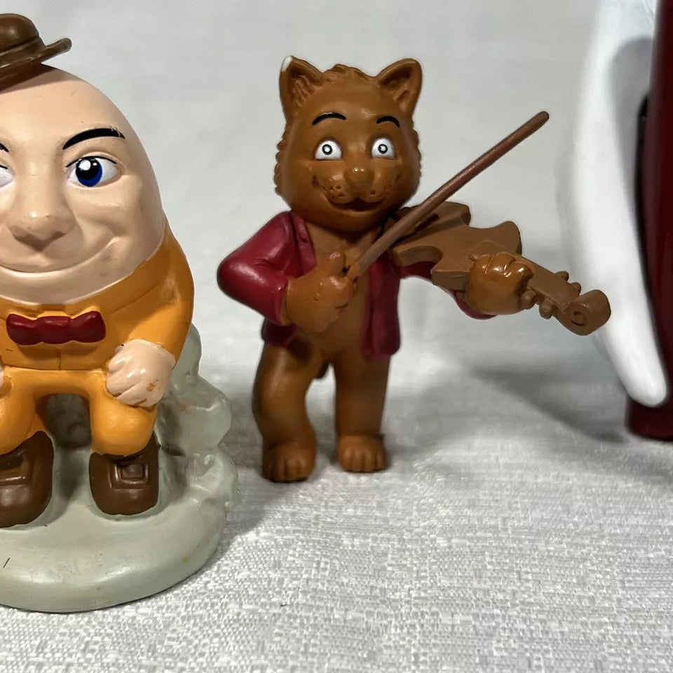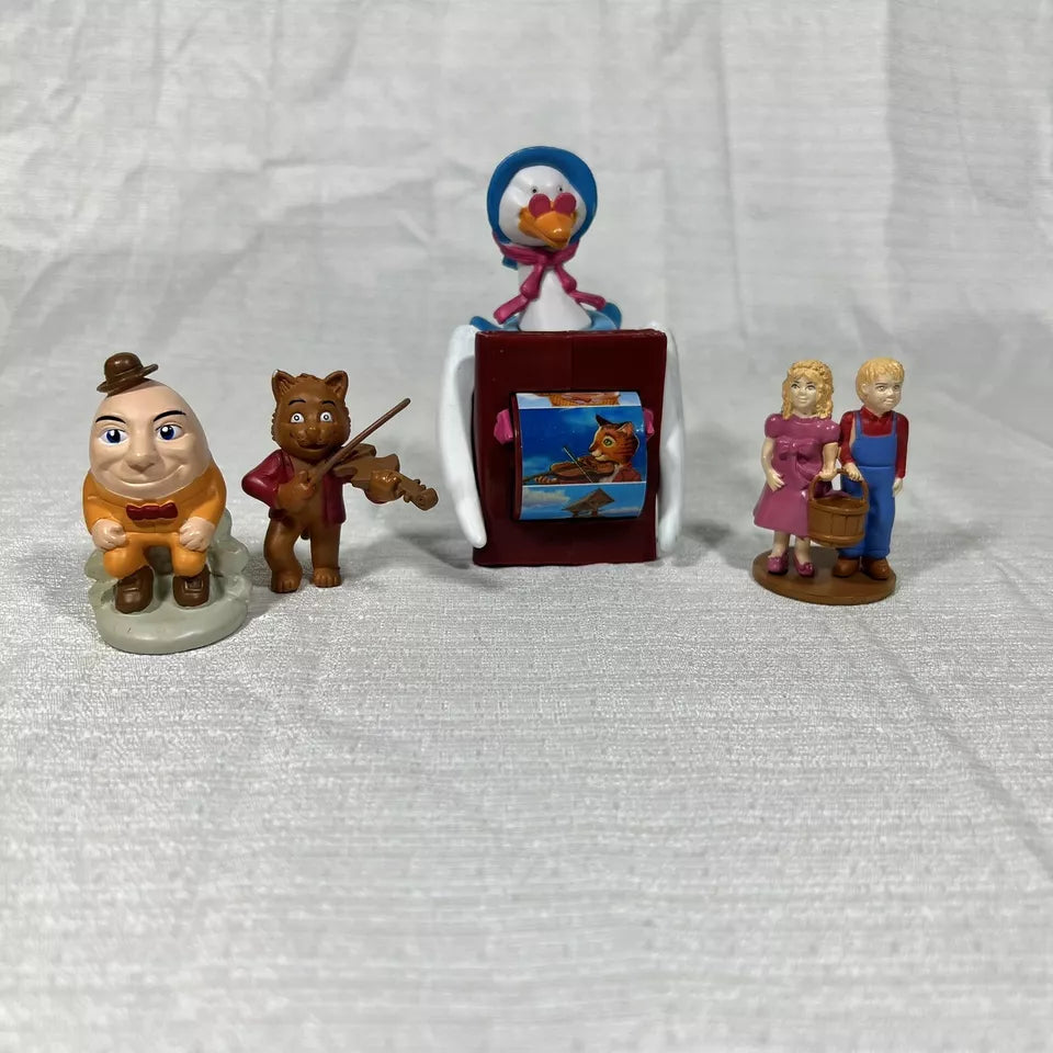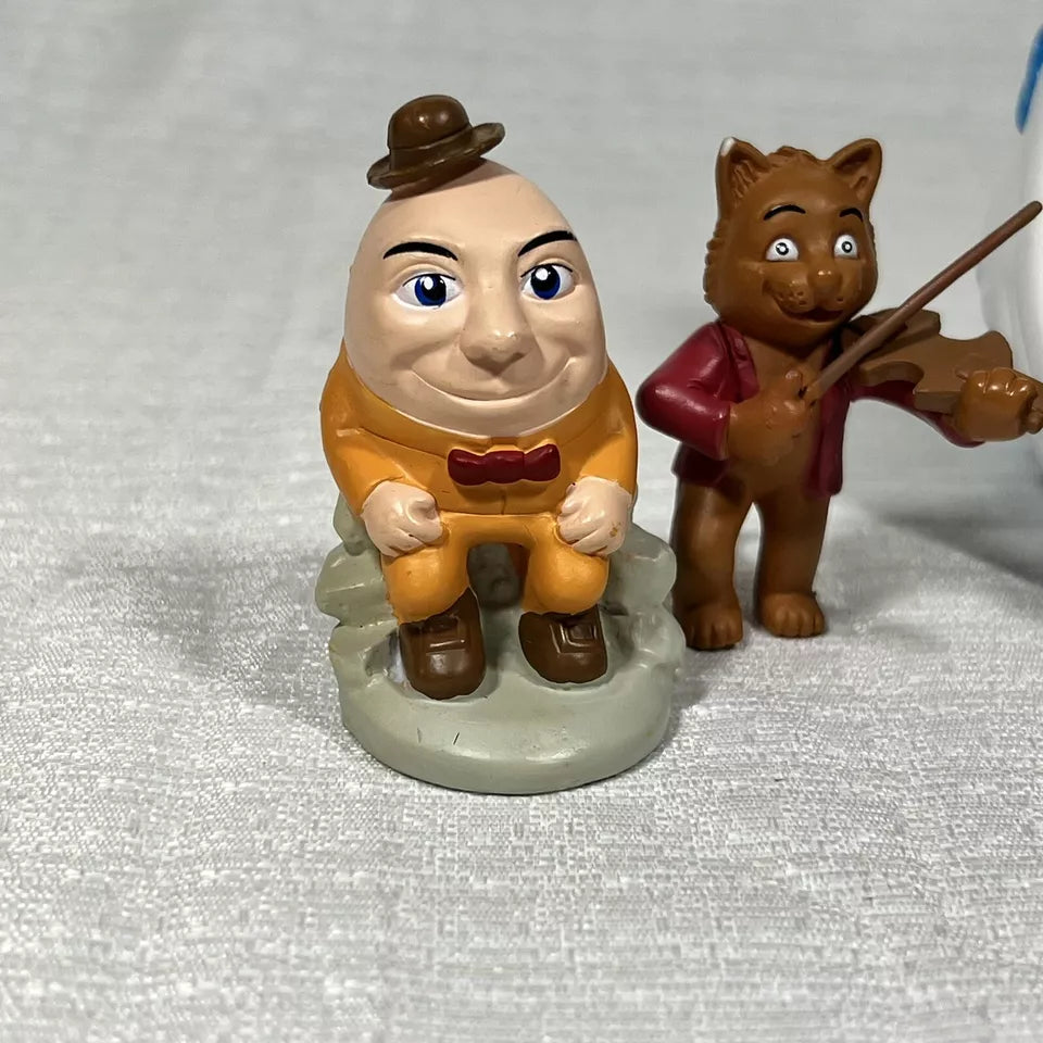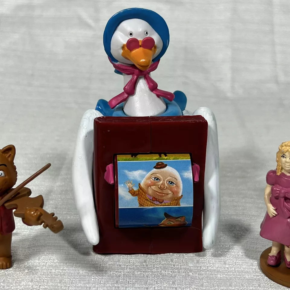 Immerse yourself in nostalgia with this lot of pieces from Tales to Play The Mother Goose Game. This collection includes the iconic Mother Goose Spinner along with pieces featuring beloved nursery rhyme characters like Jack and Jill, The Cat and the Fiddle, and Humpty Dumpty. Perfect for collectors or anyone who cherishes classic children's tales, this lot brings the magic of Mother Goose to life.