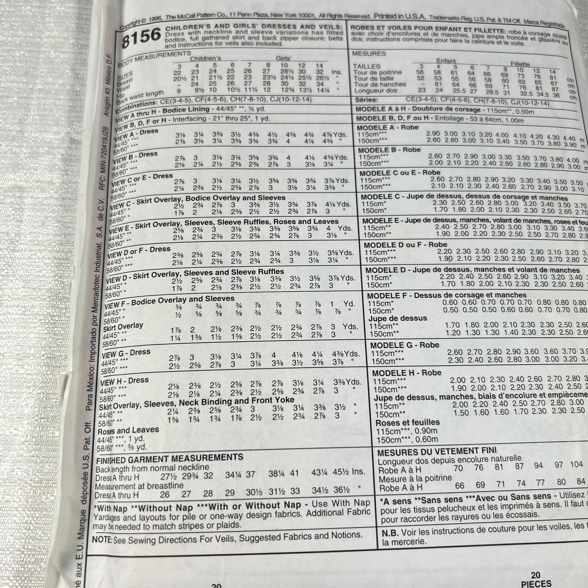 Discover the creativity of McCall's 8156 sewing pattern, perfect for crafting fashionable and comfortable garments. This versatile pattern includes a variety of stylish options such as dresses, tops, and bottoms, designed to suit different styles and occasions. Whether you're a novice or an experienced sewer, McCall's patterns are renowned for their clear instructions and high-quality pattern pieces, ensuring a successful sewing project. Elevate your wardrobe with handmade pieces or create personalized gifts using McCall's 8156.