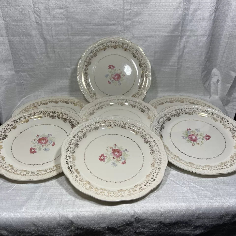 Stetson 22K Gold American Beauty Dinner Plate set of 7 - wear and crazing