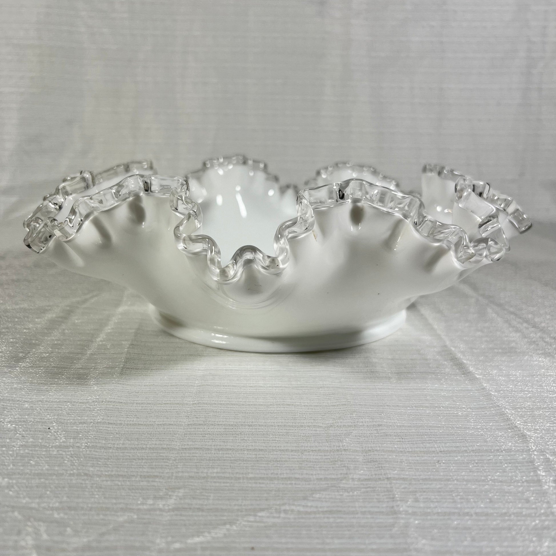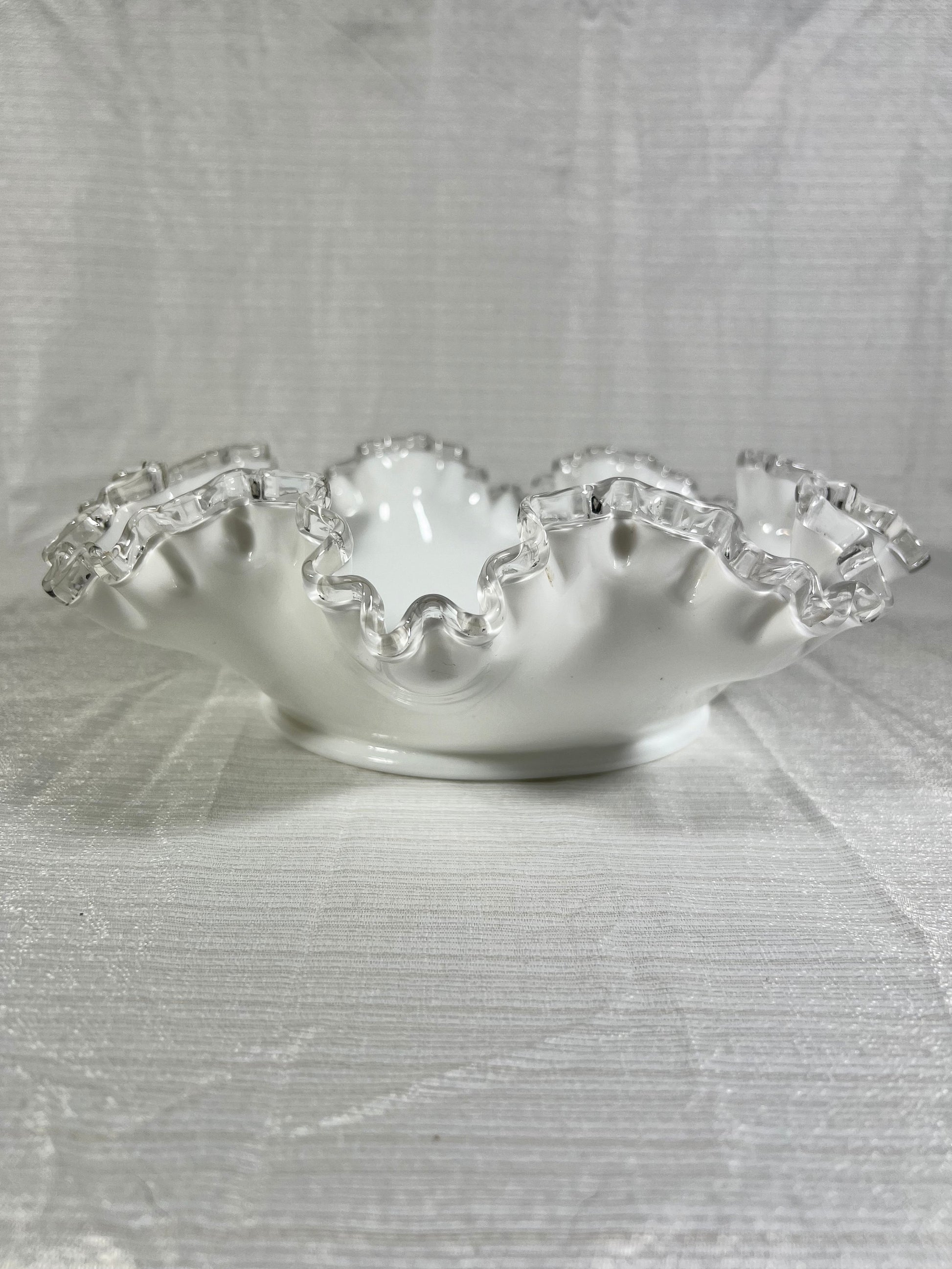 Vintage Fenton Silver Crest Crimped and Ruffle Edged Bowl
